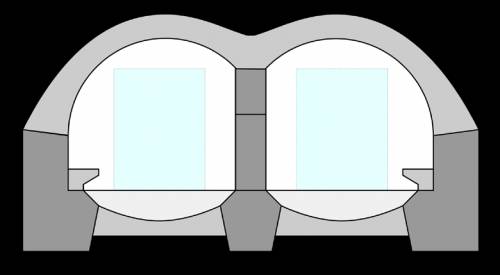 тоннеля метрополитена с колоннадой в середине.